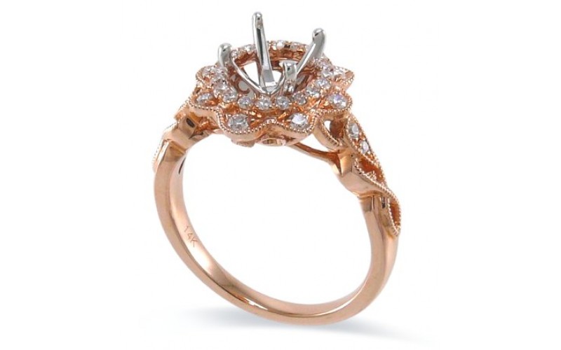 14K Rose & White Gold Diamond Ring Mounting