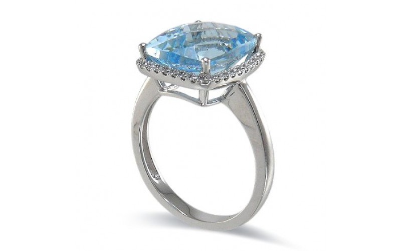 14K White Gold Aquamarine With Diamond Ring